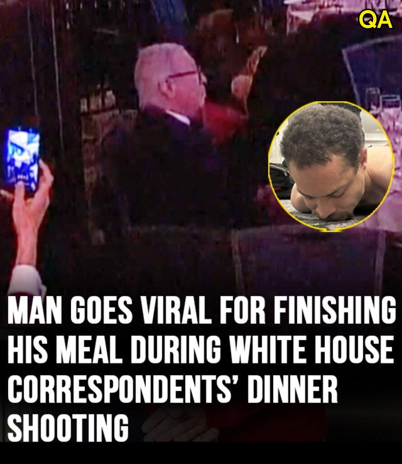 According to viral posts and circulating clips, the scene unfolded inside the ballroom of the Washington Hilton, where hundreds of high-profile guests had gathered. While many people reportedly responded quickly to the unexpected situation, one attendee appeared to continue eating, seemingly unfazed.